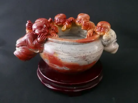 此件雕工精美,五彩巧雕,雨润光洁,美观耐看。