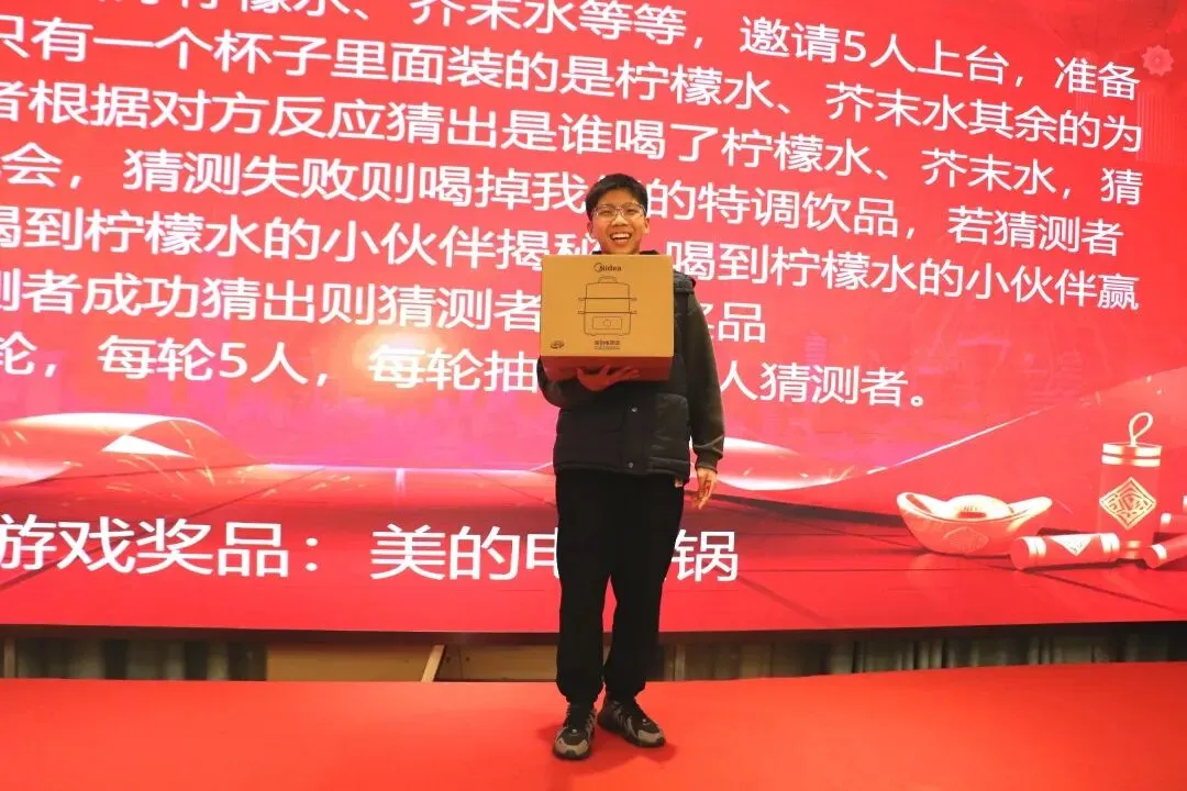 柠檬水与芥末水暗藏玄机,5 位挑战者同台竞技,旁观者凭借微表情大胆猜测。猜错的小伙伴难逃 “特调饮品” 的考验,猜对的则喜提美的电蒸锅,紧张又刺激的氛围让现场尖叫连连~