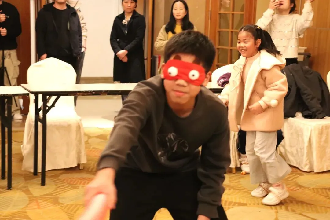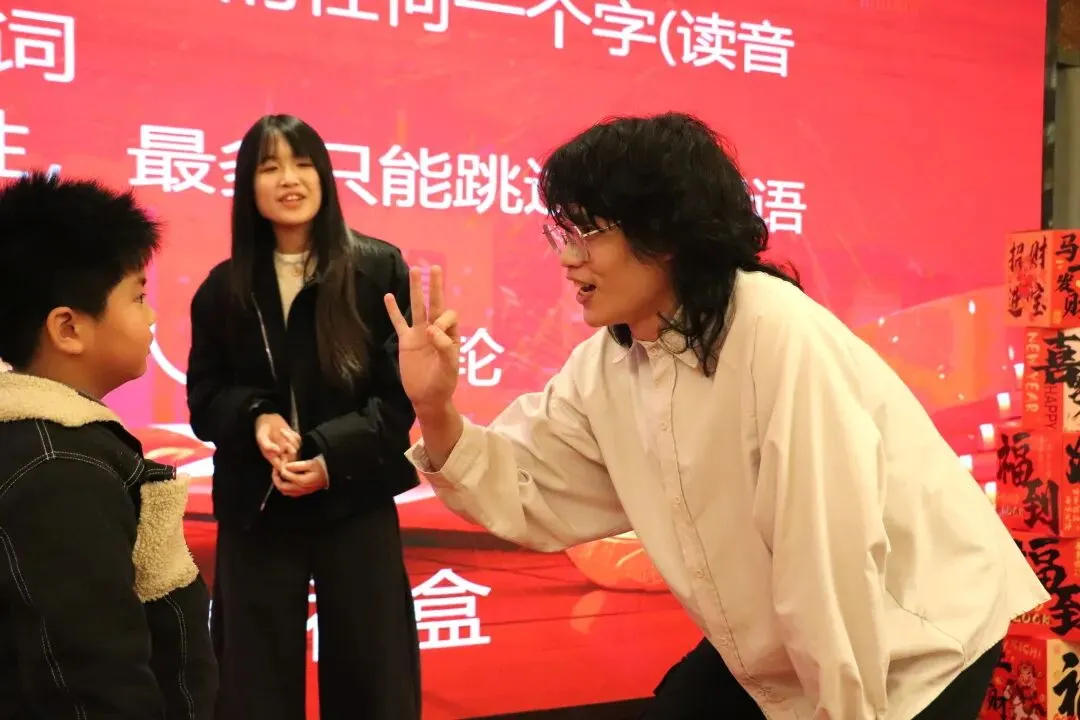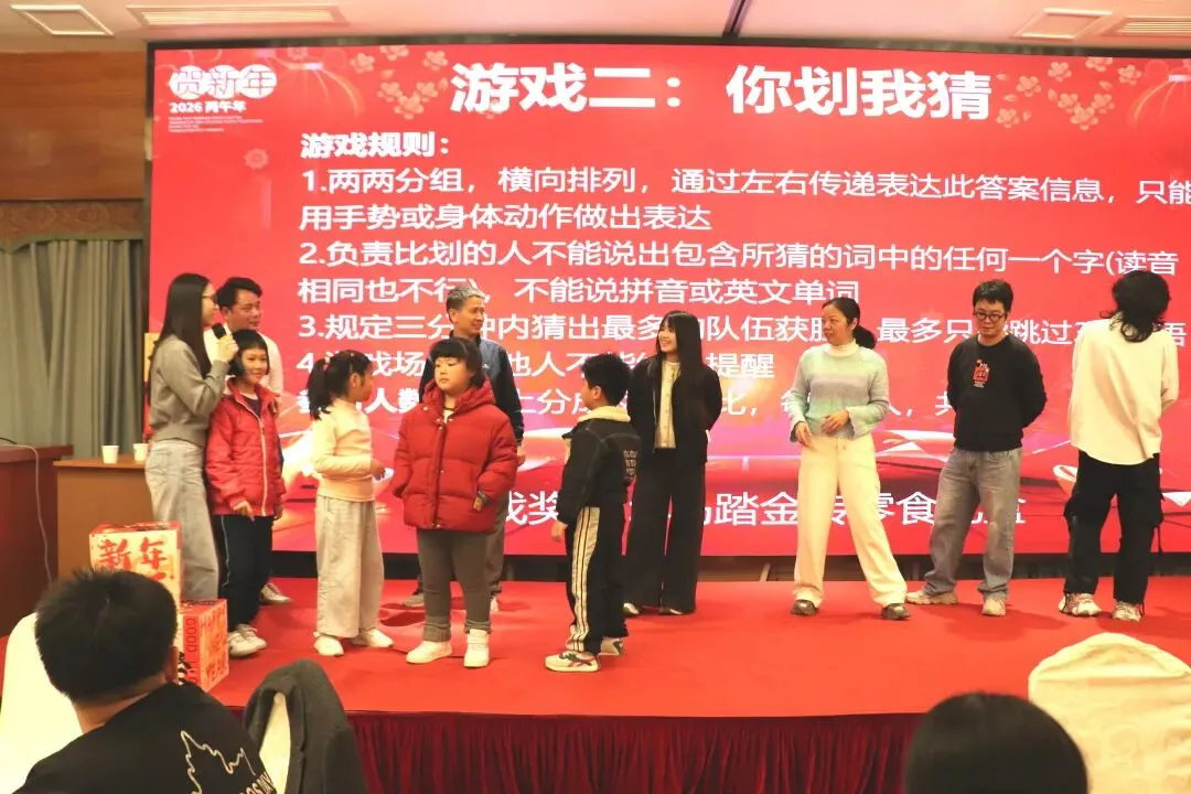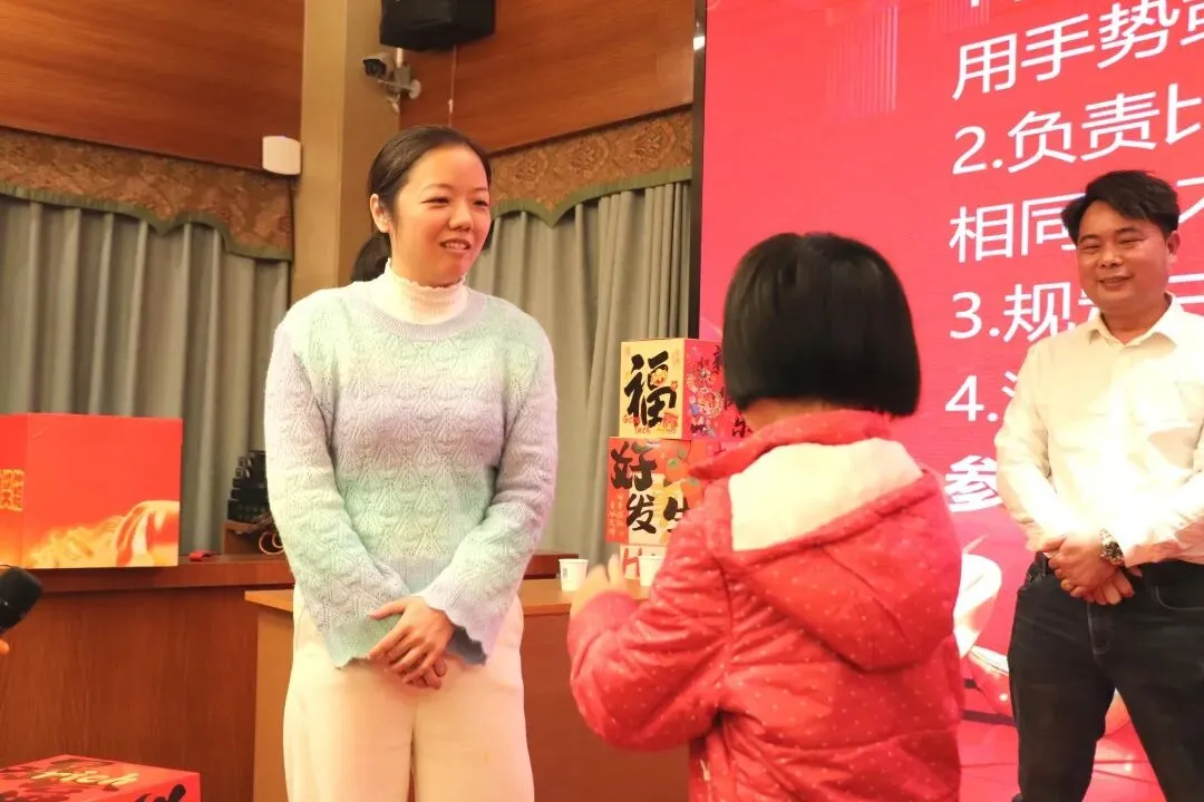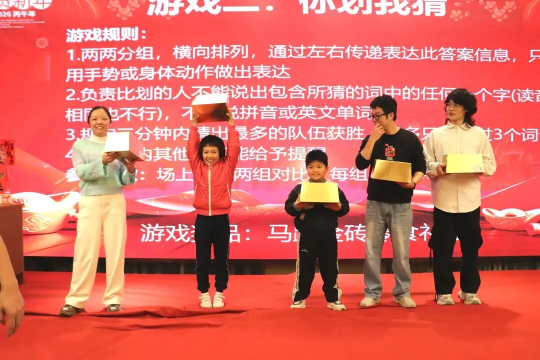 两两分组、手势传意,不能说关键词、不能用语言提示,全靠肢体默契大比拼!三分钟内,各组争分夺秒,脑洞大开的比划、啼笑皆非的误解,让现场沦为欢乐的海洋,最终获胜队伍抱走马踏金砖零食礼盒。