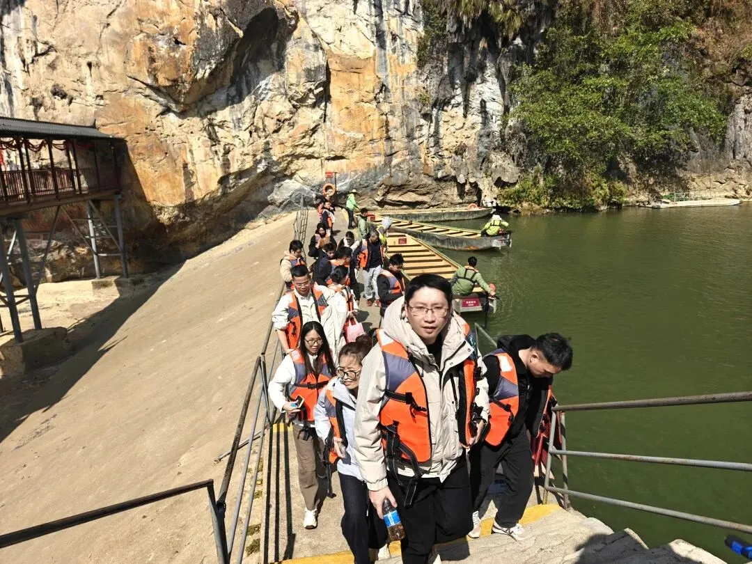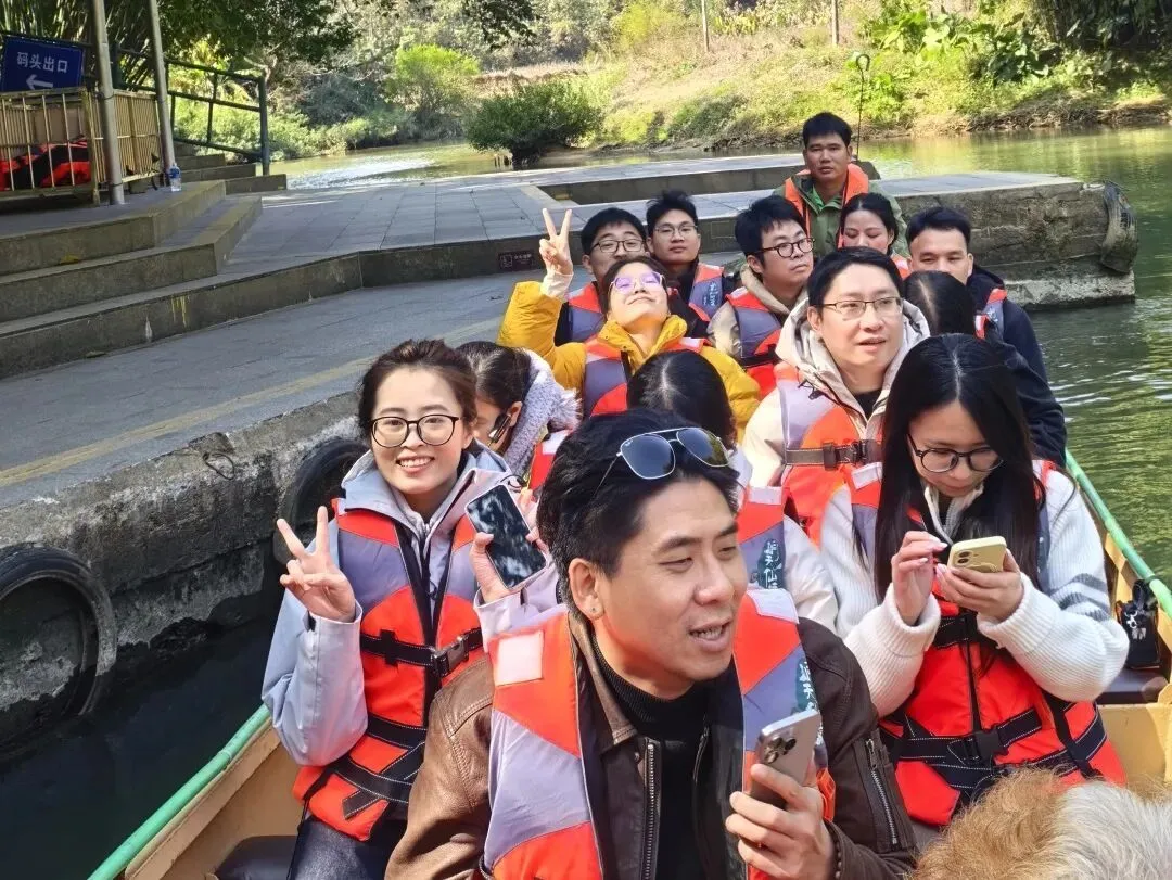 年会不止有狂欢,还有诗和远方。第二天,大家一同前往洞天仙境与峰林晓镇,在绿水青山间放松身心。乘船游览溶洞奇观,感受大自然的鬼斧神工;漫步峰林田园,享受久违的宁静惬意。酒店的温泉更是治愈良方,卸下一年的疲惫,让身心在暖意中得到舒缓。