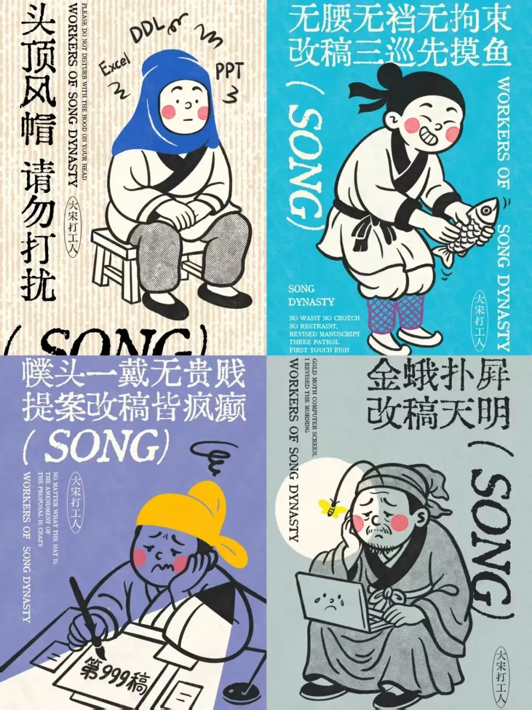 在2025“衣启·字藏万象”中华纺织服饰汉字创意大赛中,《大宋打工人》系列作品斩获金奖,其以古今文化的破圈融合、纺织服饰元素的巧思嵌入、汉字创意的趣味表达,构建出极具张力的视觉与文化叙事,为传统纺织服饰文化的当代传播开辟了新颖路径。