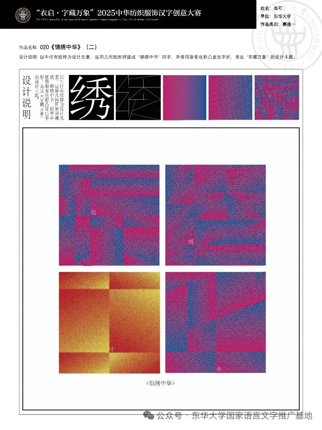 作为中华纺织服饰汉字创意大赛的作品,纺织服饰元素是其创意的核心支点,且实现了从“物质载体”到“精神符号”的巧妙转译: