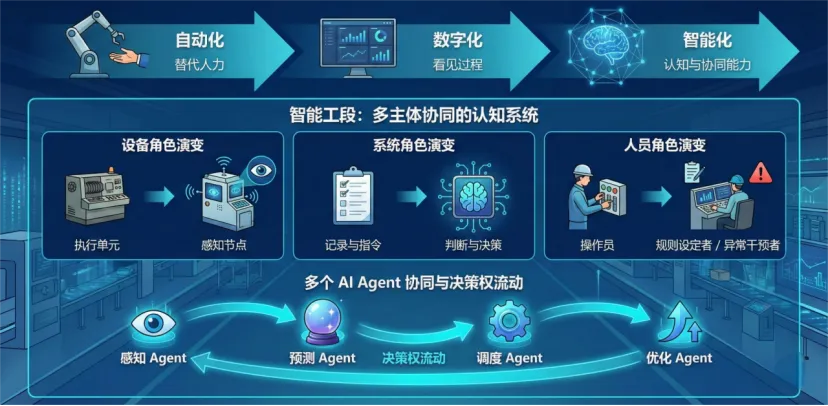 当工段内部出现多个 AI Agent,各自承担感知、预测、调度、优化等职能,真正的变化并不是“多了几个算法模块”,而是决策权开始在系统内部流动。