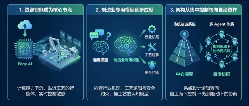 实时控制对时延极其敏感,计算能力下沉到边缘侧,使 AI Agent 更接近物理现场,成为“贴近工艺的智能体”。