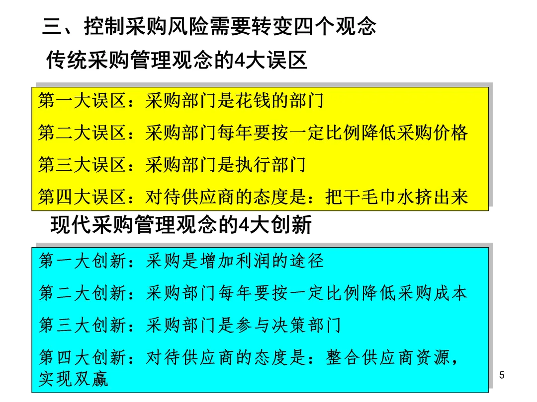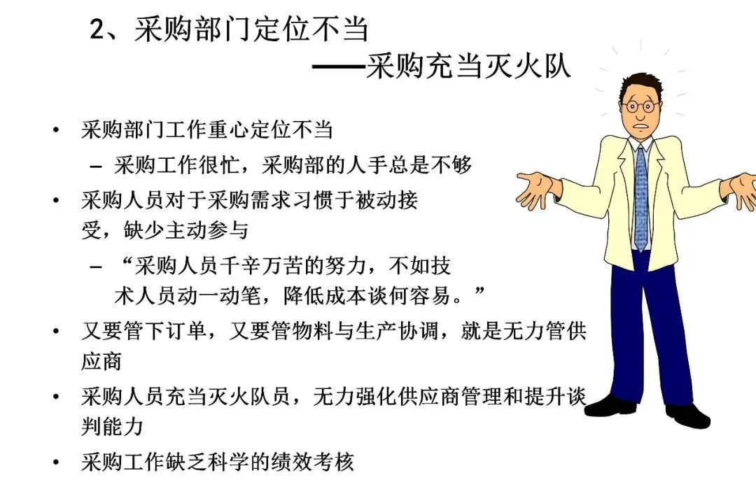 而陈旧的操作习惯,更使其容易落入几种典型的认知与实践窠臼:仅关注价格年降、被动执行需求、忽视供应商长期合作。这些做法虽能短期压价,却暗藏质量波动、交货延迟、技术依赖等风险。现代采购强调四大创新:采购是利润来源、成本应系统降低、部门应参与决策、供应商需整合共赢。