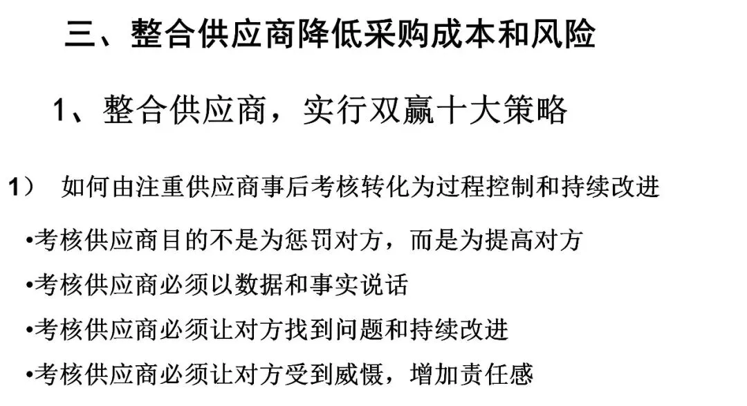 要有效管理风险,必须推动三个转变:从“价格优先”到“总成本最优”,从“单向压榨”到“双向协同”,从“事后纠错”到“全程预防”。这意味着采购需提前介入研发、联动生产与物流、协同财务与质量部门,将风险管控前置到需求端。