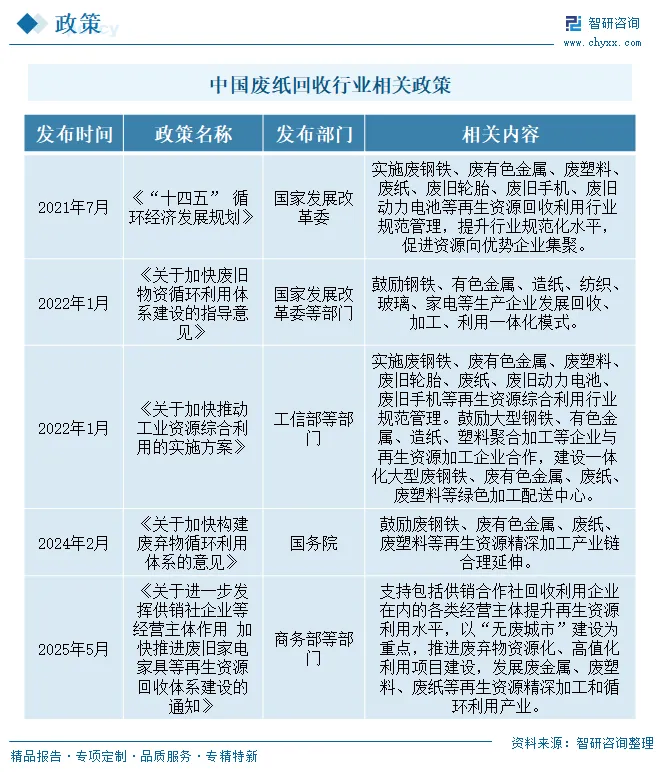 相关报告:智研咨询发布的《中国废纸回收行业市场发展态势及未来趋势研判报告》