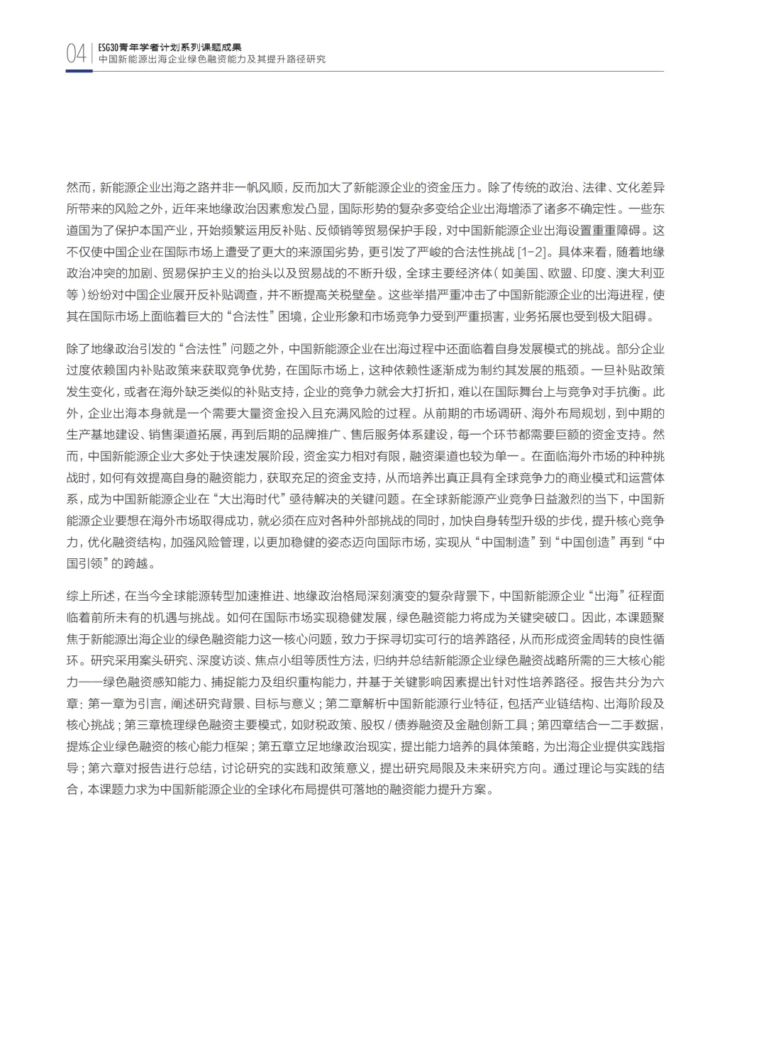 这份由财新智库、中国ESG30人论坛(ESG30)发起、东方证券联合发起的ESG30青年学者计划(2024-2025)研究报告——《绿色融资能力及其提升路径研究》,聚焦新能源出海企业的绿色融资能力问题,为行业发展提供了系统性的分析与实践指引。