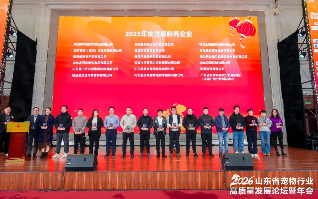 蓝孚股份受邀出席本次盛会,并凭借在宠物行业领域的专业服务能力与持续贡献,荣获山东省宠物行业协会2025年度“优秀服务企业”称号,这也是蓝孚股份连续第四年获此殊荣。