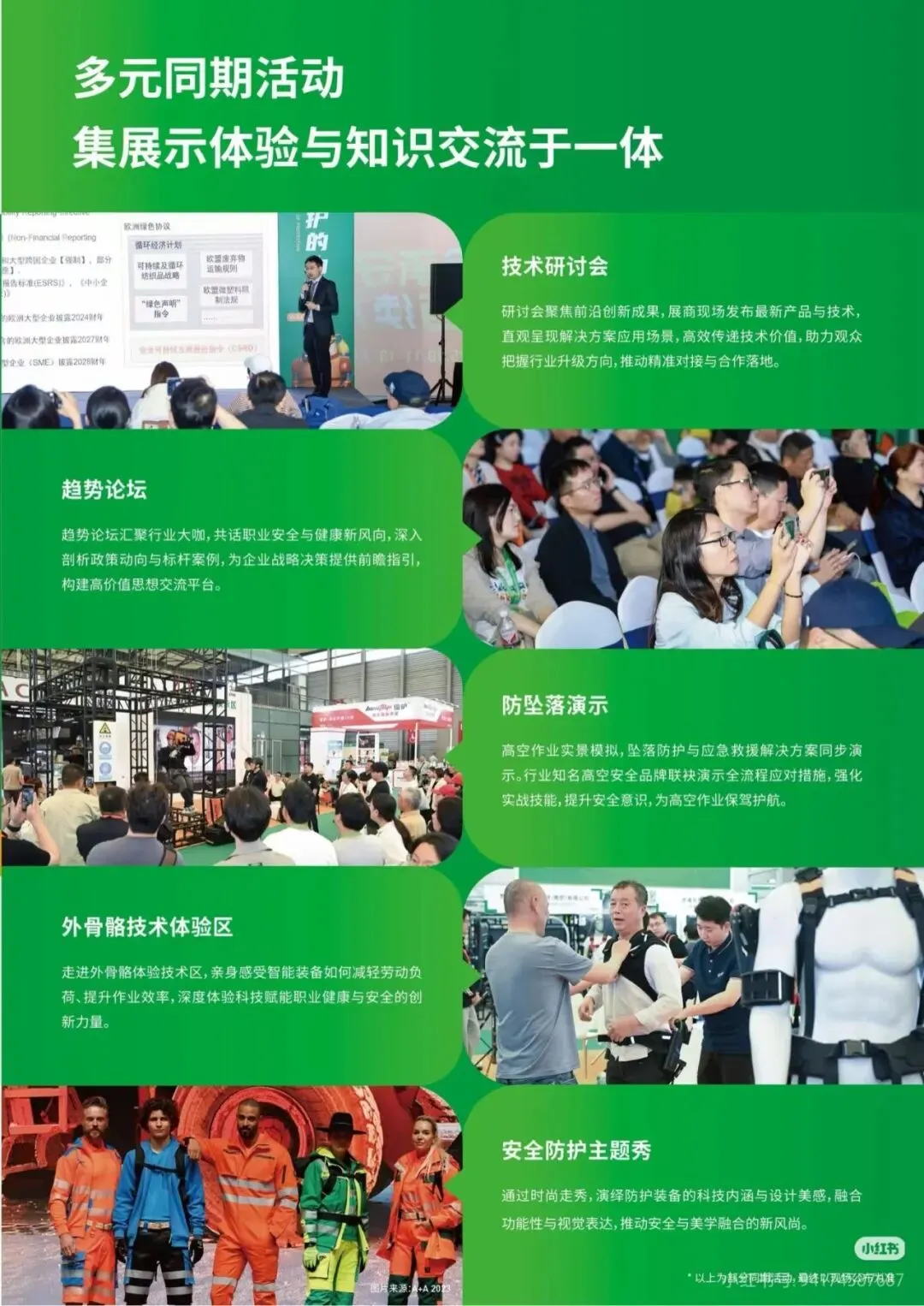 展会亮点:超60%的展商将推出智能化产品,如智能安全帽等;绿色环保产品占比提升,可降解防护服等产品备受关注;新增“VR高空作业模拟区”等场景化体验区域;国家应急管理部将在同期论坛解读相关政策。