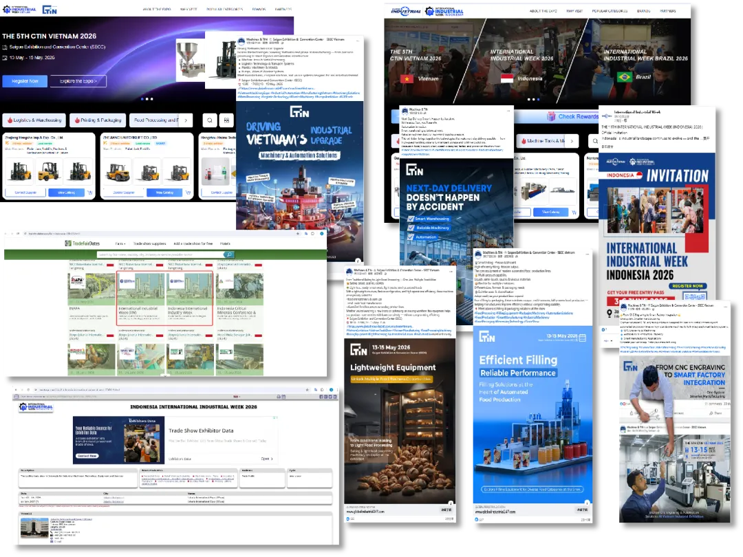 作为国际工业展会的领军主办方,米奥兰特依托覆盖全球的供应链服务网络与百万级买家外贸数据库,针对东南亚三大工业展会启动高投入、全方位的宣传推广与定向邀约计划,整合买卖家智能体(原预展平台)、媒体投放、Facebook/Instagram/Linkedin/Tiktok等社媒运营、市场走访、电话邀约、商协会邀约等10多种渠道,构建“线上+线下” “精准触达+广泛覆盖”的立体传播体系,全力扩大展会国际影响力,保障中国企业出海实效。
