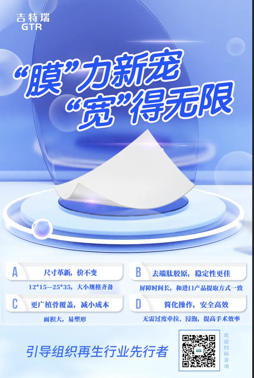 吉特瑞医用胶原修复膜广泛应用于口腔种植科、牙周科、颌面外科领域,规格齐全,使用历史悠久,口碑好。