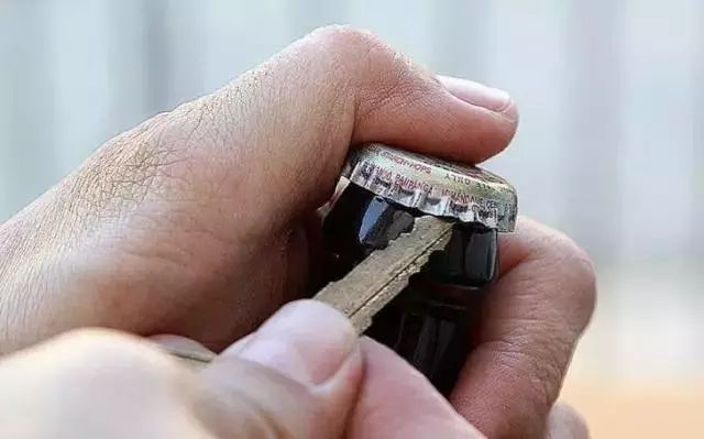 无论是车钥匙,还是家中各个地方的钥匙都有一大把,用它来开瓶盖很合适。我们需要一手拿钥匙、一手拿啤酒,将钥匙抵在瓶盖下方,用钥匙一边转动酒瓶,一边撬瓶盖,这样做很容易将瓶盖打开。