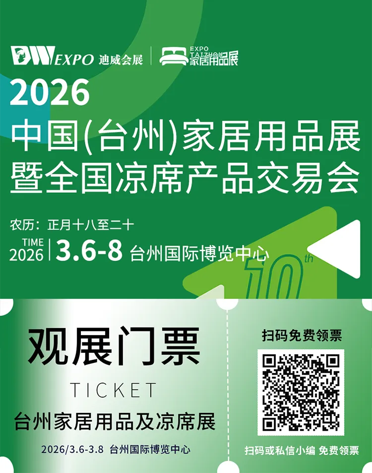2026年3月6日至8日,第十届中国(台州)家居用品展暨全国凉席产品交易会将在台州国际博览中心举办,聚焦“链接产业生态,赋能家居消费”,打造家居行业年度标杆盛会。