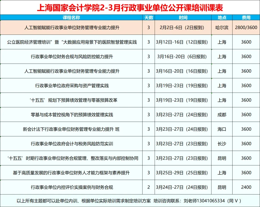 上海国家会计学院3月行政事业单位培训课程推荐