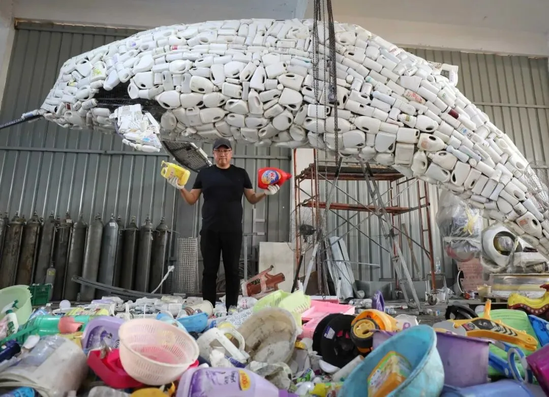 面对无处不在垃圾,徐国峰将其中地塑料袋、吸管、塑料瓶等“白色污染”元素进行收集作为材料进行艺术创作,以废弃材料表达生命与生存的感受。这些高分子化合物结构稳定,不易被天然微生物菌降解,自然腐烂需要200年以上,极易形成污染。近来年在人类最高的珠穆朗玛峰以及最深的马里亚纳海沟底部都发现了塑料垃圾,而最新消息人类胎盘中也首次发现为微塑料,着实令人恐惧,塑料污染在不断挑战着人类的底线。有人说人类越是发展其危机就越大,面对以环境污染为代表的人类所面临地系统性危机,艺术家以一个小的出发点介入创作,通过艺术作品启发人们对于自身环境问题的关注与思考。