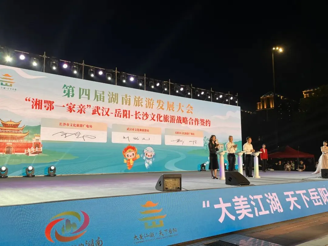 现场,第四届湖南旅游发展大会执委会办公室与优质供应商、合作赞助商现场签约,一批文旅项目企业签约和一批旅行社签约。武汉、长沙、岳阳三地文旅部门签署战略合作框架协议,促进三地文化旅游业融合发展,实现游客互动往来,做大做强湘鄂文旅产业,共同打造长江中游区域精品旅游线路。