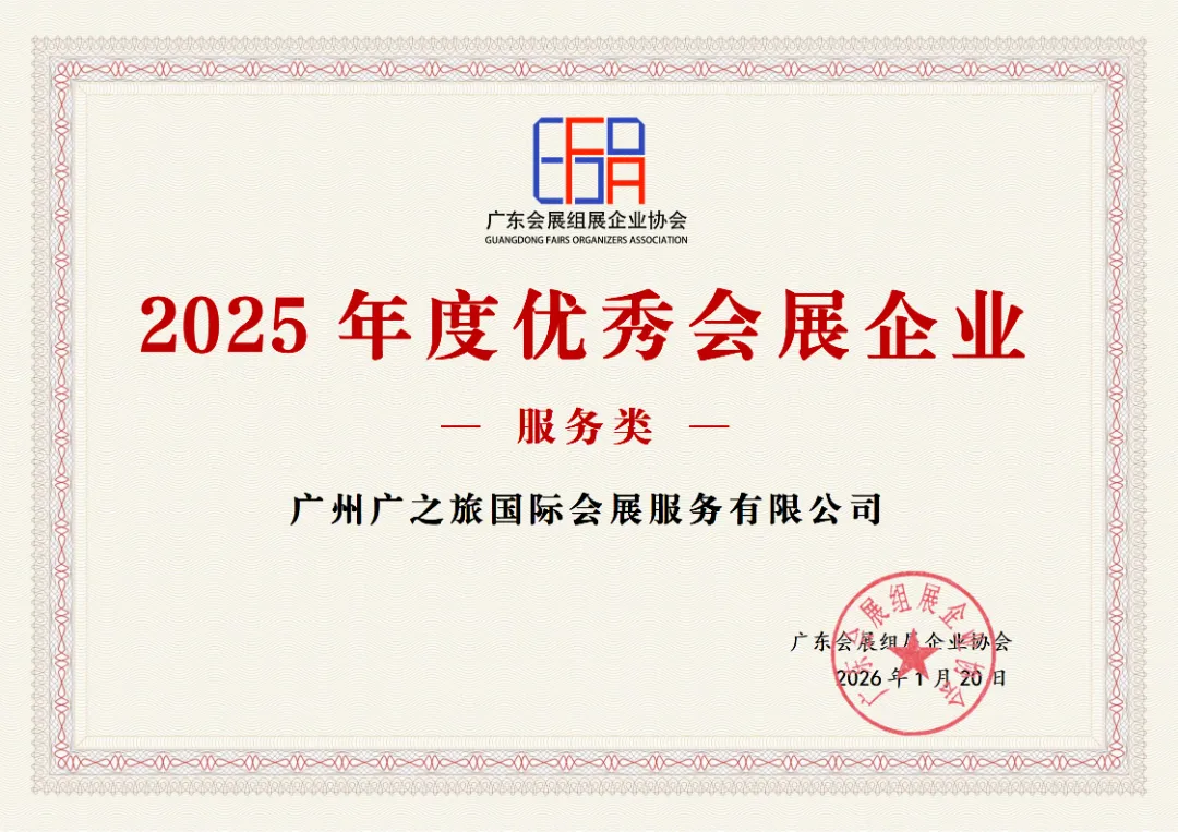 会展集团在2026年第二届国际会展活动产业链大会中斩获重要奖项,集团本部与旗下广州市国际展览有限公司凭借展会策划与主办实力,双双荣获广东会展组展企业协会授予的“2025年度优秀会展企业(主办类)”称号。同时,作为岭南集团会展产业链协同兄弟单位,广州广之旅国际会展服务有限公司则以高效优质的服务水平,不仅获评该协会“2025年度优秀会展企业(服务类)”,同时荣获深圳市会议展览业协会“优秀会展服务企业”奖项,成为跨区域认可的服务标杆。