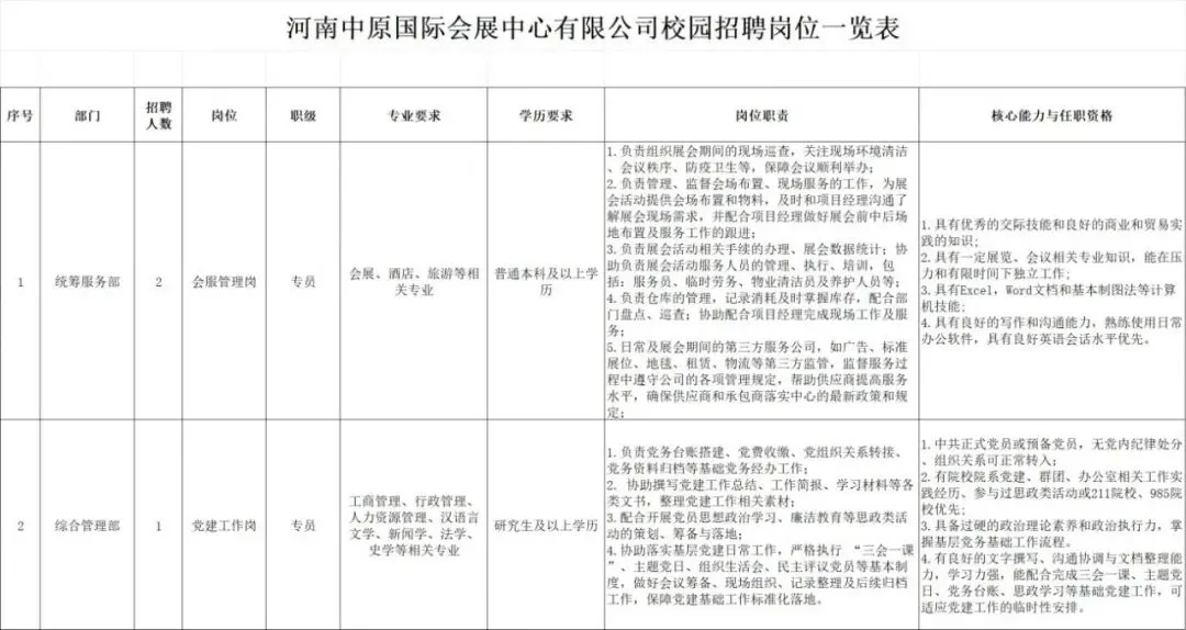 通过河南中原国际会展中心有限公司官方企业微信公众号发布招聘公告。