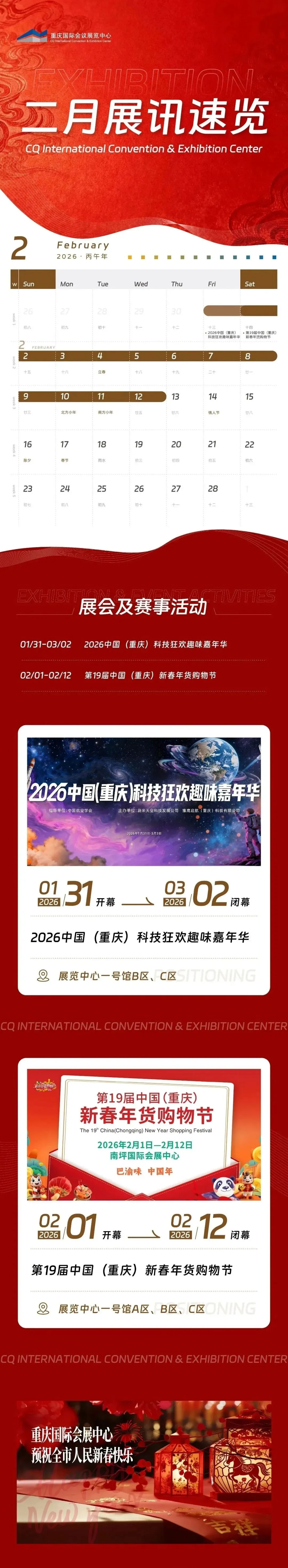 2026年2月重庆展会排期 | 重庆国际会议展览中心2月份展会排期,收藏转发!