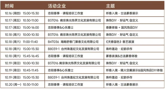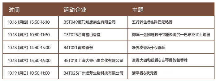 名香品鉴会“寻香之旅”,展商将以最大的诚意拿出优质香品供观众品赏,邀请你来到品牌展商的展位,停驻一炉香的时光。