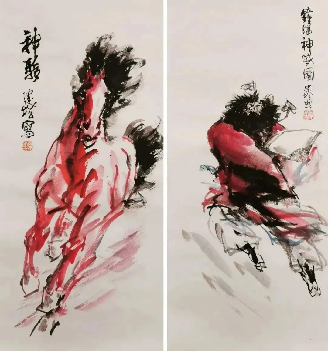 黄建培《神骏》《钟馗神威图》国画