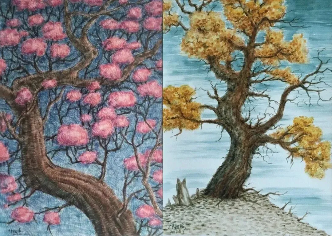 邝祖海《梦幻的树》《舞动的生命》水彩
