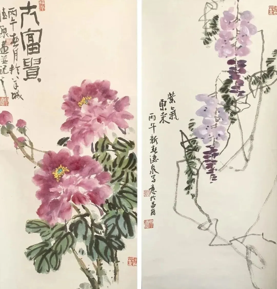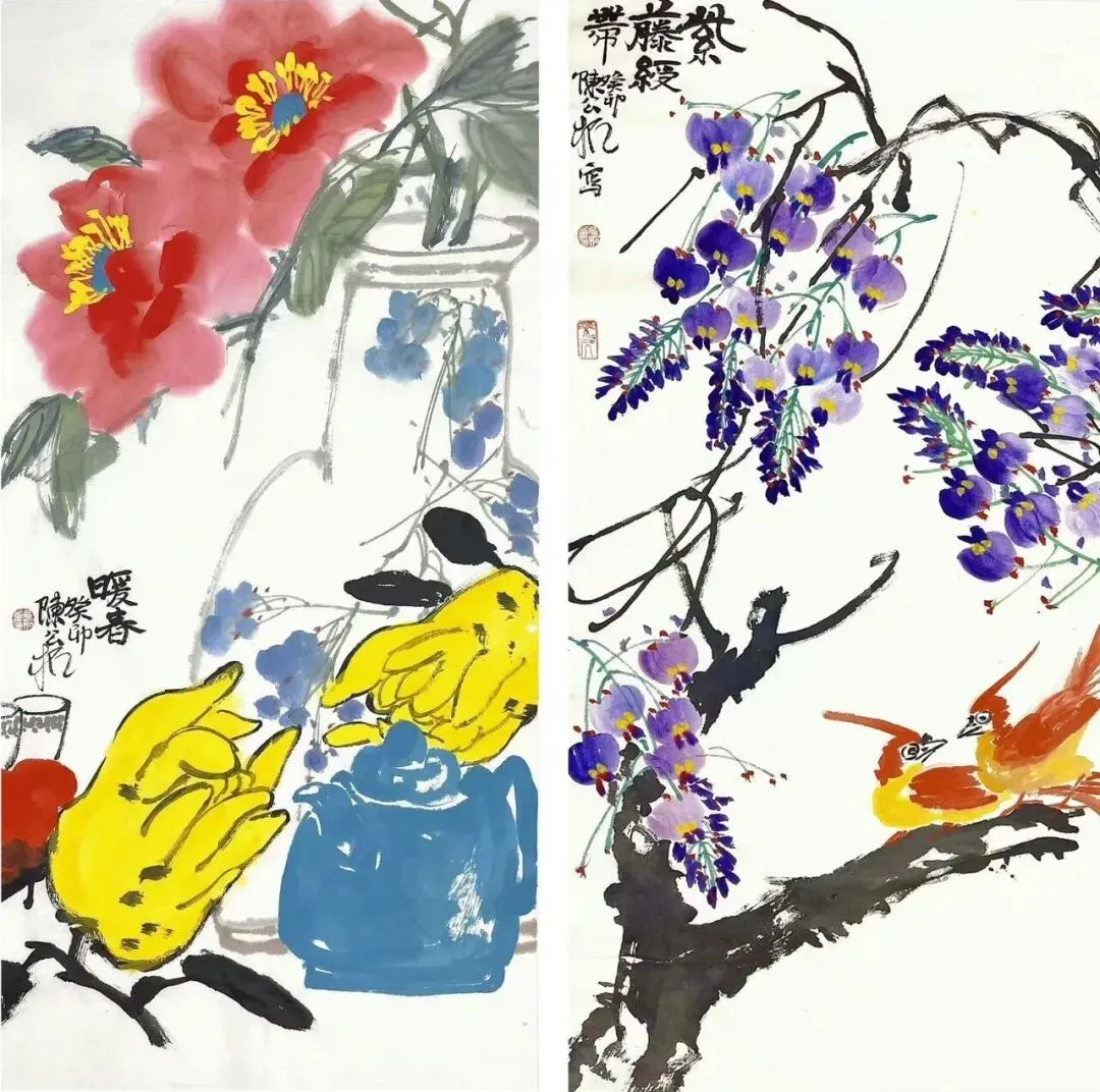 陈公拓《暖春》《紫藤花开》 国画