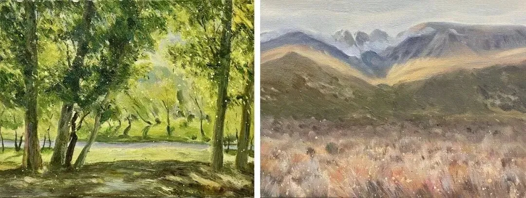 袁锋渊《千叶曝》《山犹在光中》油画