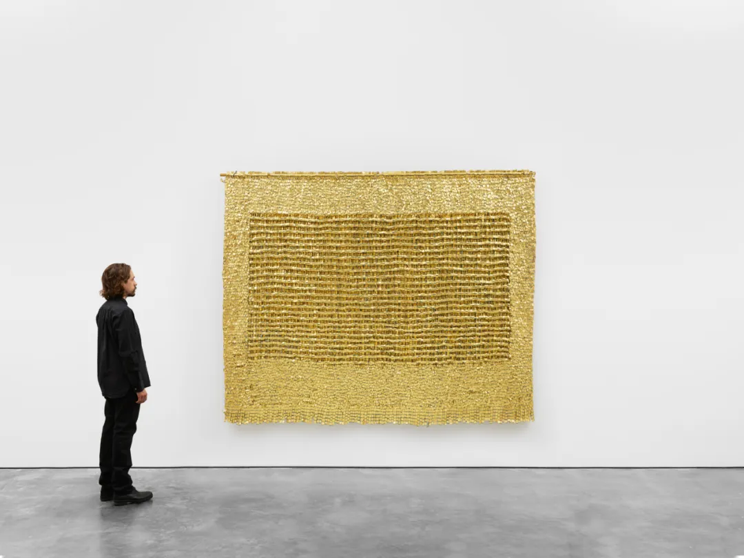 里森画廊以哥伦比亚艺术家奥尔加·德·阿马拉尔(Olga de Amaral)的纤维艺术装置为核心,呈现《Cobalto》《Cintas Entrelazadas》等代表作。阿马拉尔将中世纪圣像画精神与现代主义网格融合,金箔与织物交织出跨越时空的视觉诗学,呼应中东传统工艺的当代重生。
