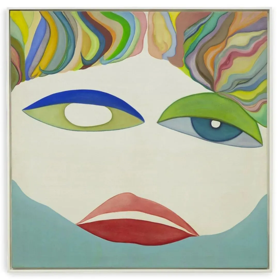 休格特·卡兰(Huguette Caland),《Visage(面容)》,1973年。布面油画,120 × 120 厘米,装框尺寸 123.4 × 123.4 厘米。© Huguette Caland Estate。图片由 Huguette Caland Estate 与 SFG 画廊提供,摄影:Archives Mennour。