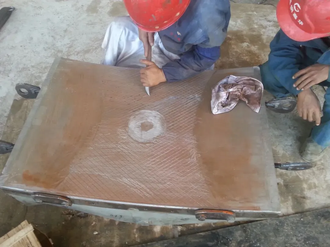- 如果窑壳表面有氧化层或杂物造成不平,可以用电磨或其它工具将其去除。在一些窑壳变形的地方,通常都是在耐火砖的底部涂火泥,也可以将窑砖去除一小部份边角进行整平。