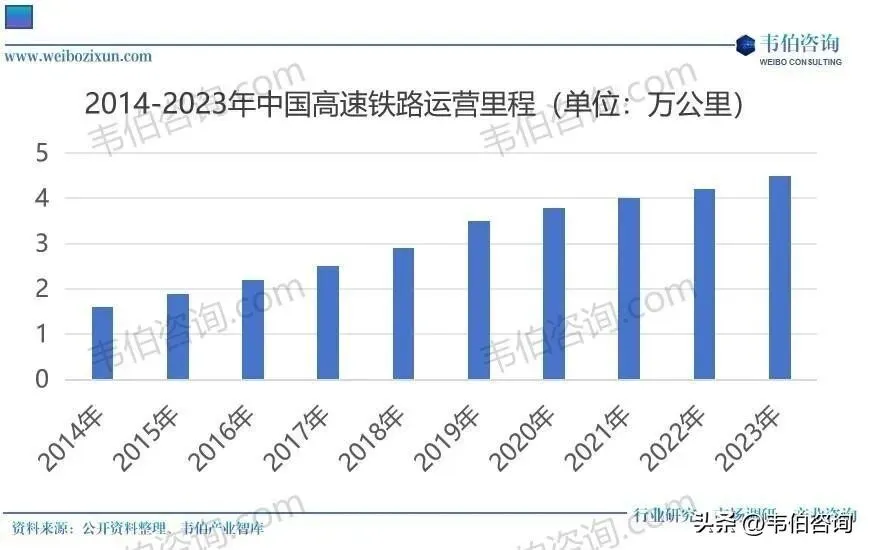 图表1:2014-2023年中国高速铁路运营里程(万公里)