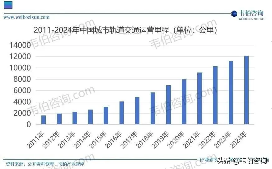 图表2:2011-2024年中国城市轨道交通运营里程(公里)