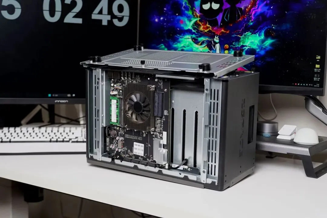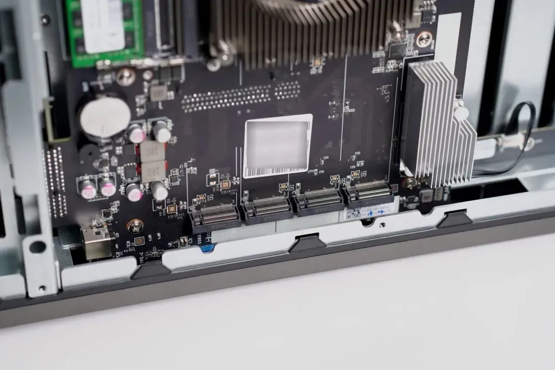 固态硬盘安装+内存安装+风扇清灰是后期NAS维护的常规操作,极空间P8+只需要拆卸五颗螺丝+底部挡板即可。
