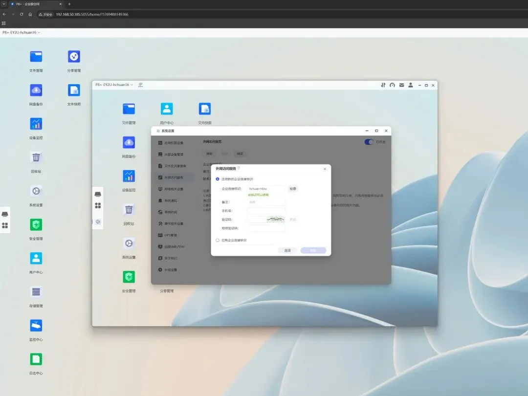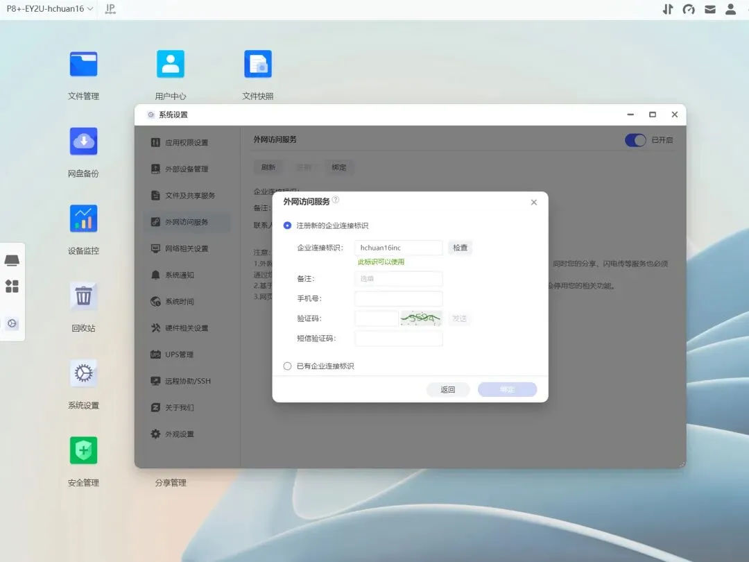 极空间P8+的初始化流程依旧简单高效,绑定企业标识就可以获取专属免费域名,无需专线也能享受外网访问,对企业来说可以省一笔小费用。