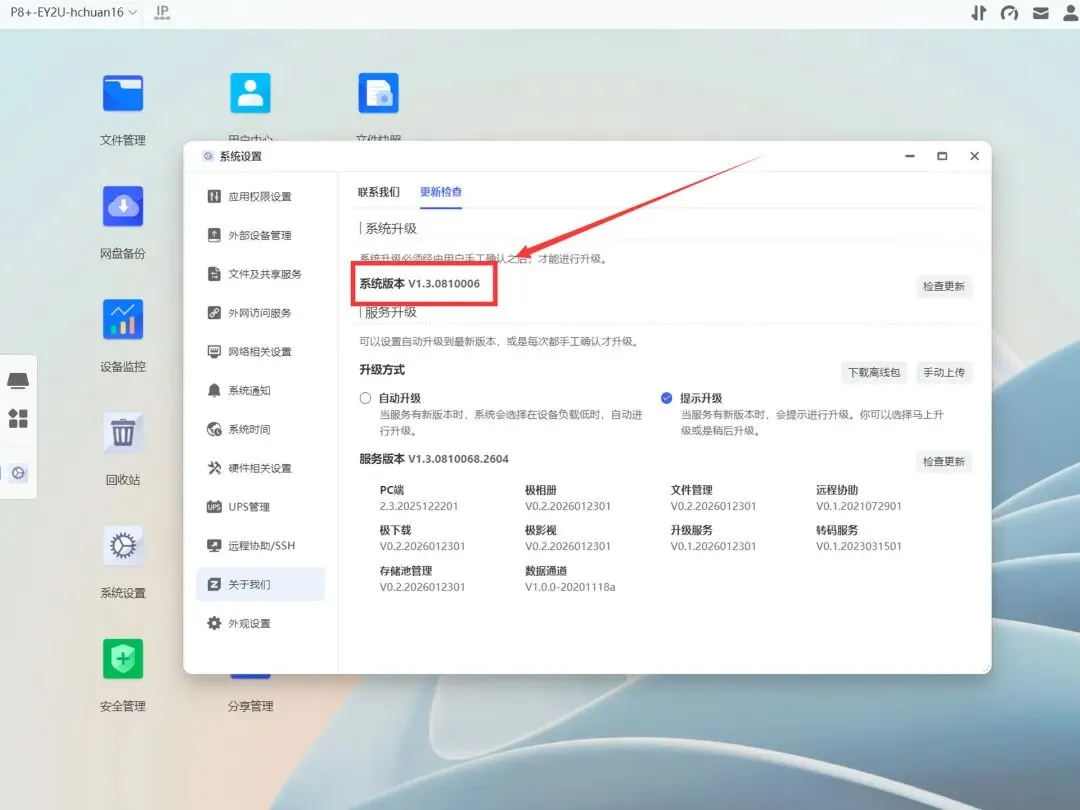 极空间P8+首发EZOS系统版本号是V1.3.080006,作为企业级NAS,研发团队短期一般不会做特别大的底层升级,下面说的特性会保持很长时间。