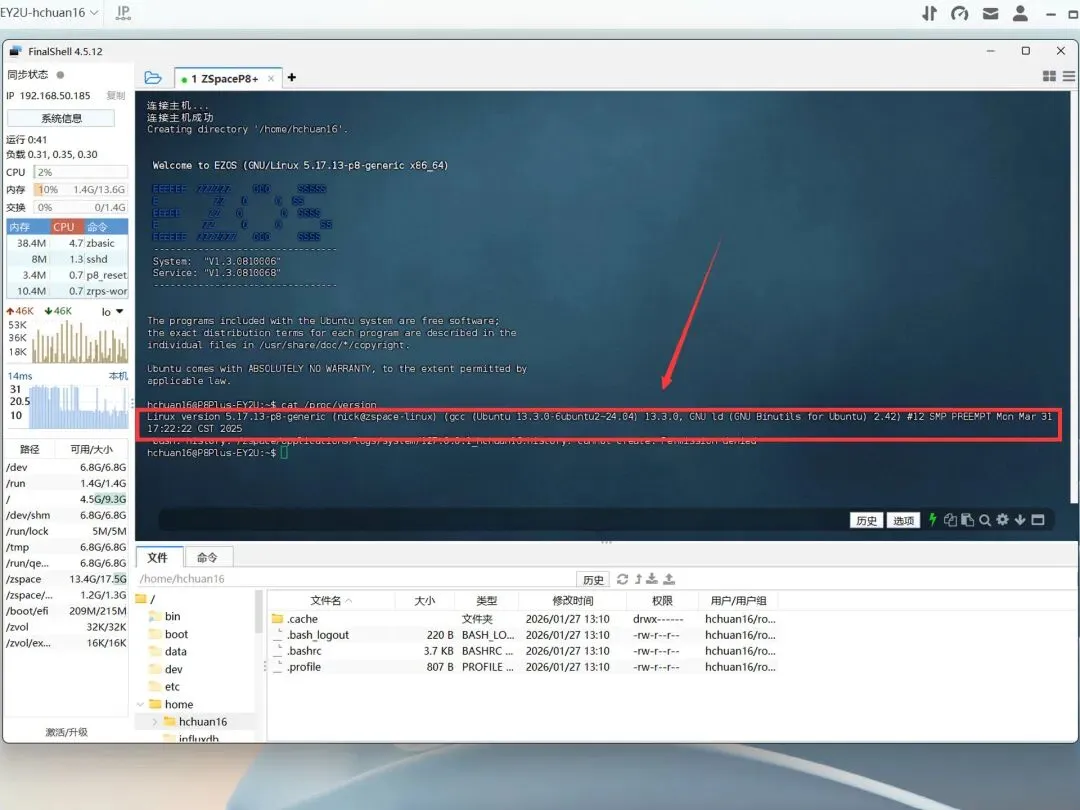 通过SSH登陆超级管理员账号就可以看到EZOS的整个系统信息了,系统链为经典的Ubuntu组合: