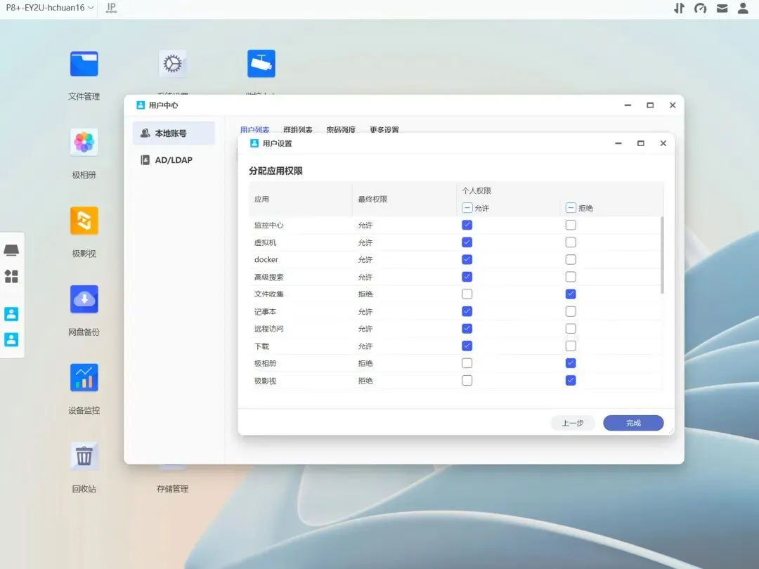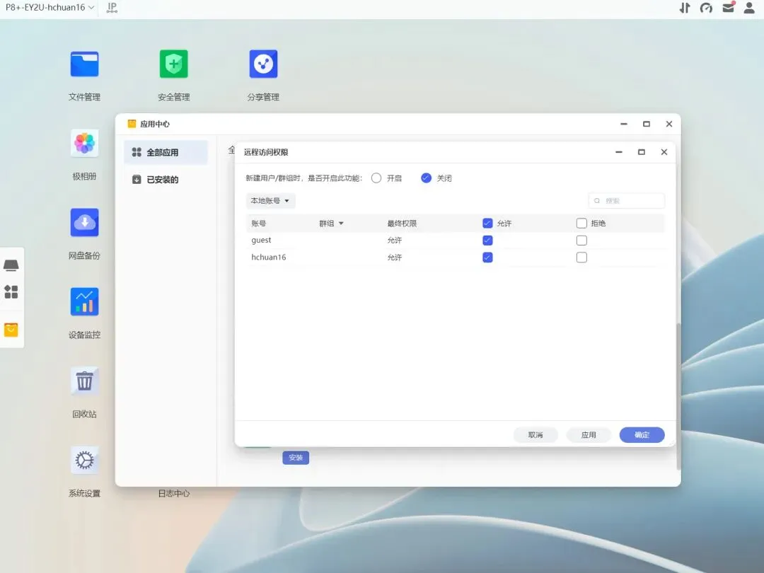针对不同群组用户,应用中心安装软件时会自动弹出权限设置,个人用户看着是麻烦点,但对企业来说是好事,毕竟保密更重要一些。
