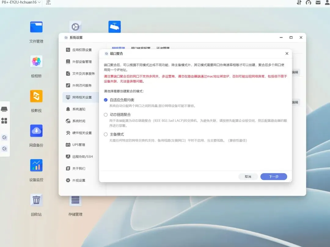 拥有多个独立网络的企业比较常见,极空间P8+作为拥有双网口的NAS,自然也有多种应用方式,常规的负载均衡和灾备转移相信大家已经很熟悉,就不多做介绍了。