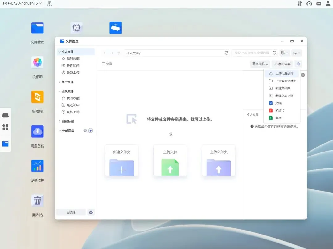 极空间的ZOS和EZOS设计出发点都是简单易用,这里简单做个展示。