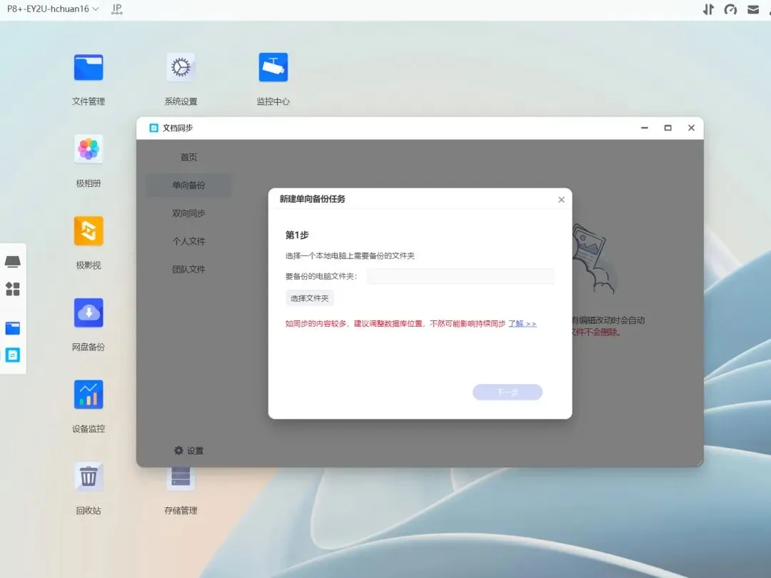 电脑比较简单,使用文档同步直接创建同步任务就行,没有什么特别好介绍的,跟着设置向导一路选择就行。