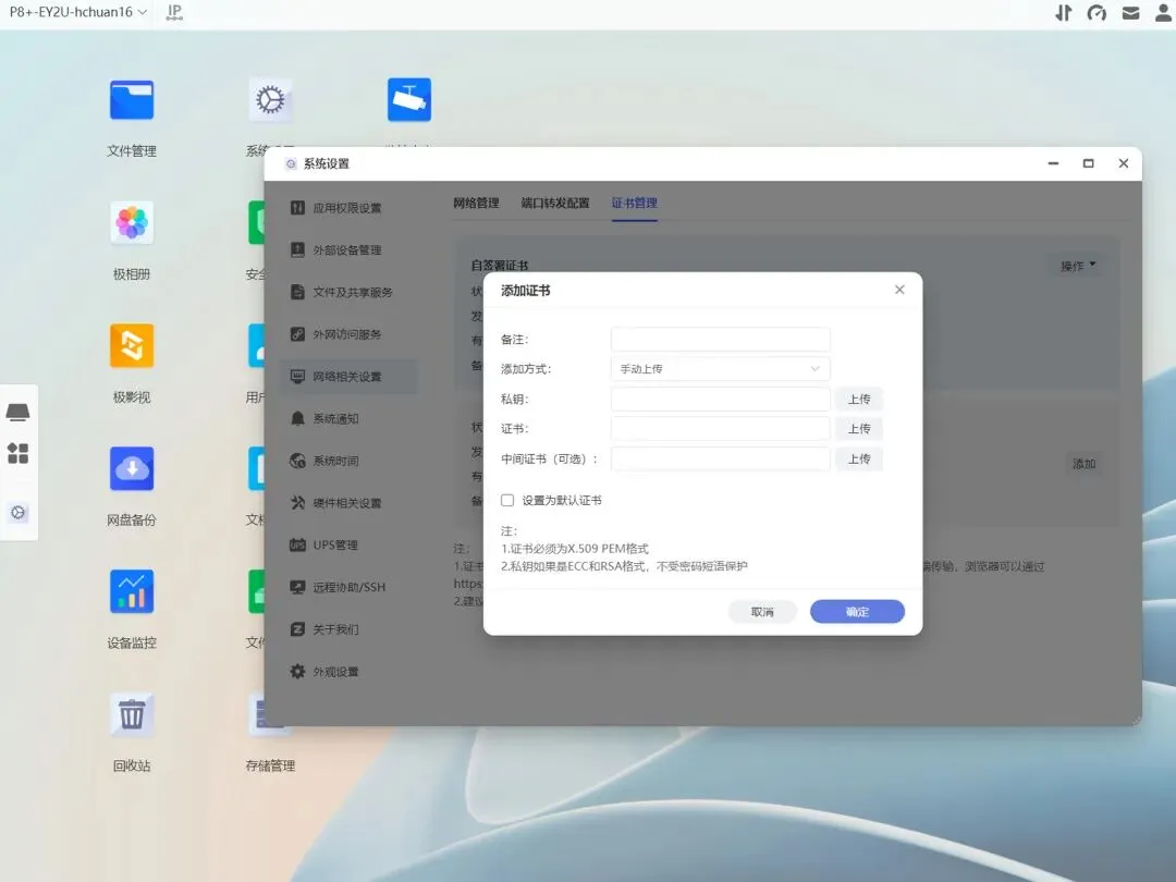 外部访问也很简单,极空间本身提供免费的证书,如果很在意安全性且外部网络访问较多,可以选择单独购买更安全可靠的第三方证书,一键导入就行。