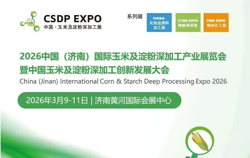2026中国(济南)国际玉米及淀粉深加工产业展览会暨2026中国玉米及淀粉深加工创新发展大会(简称:2026济南淀粉展)将于2026年3月9-11日在济南黄河国际会展中心召开,本次展会以“创新驱动·绿色智造”为主题,展示玉米及淀粉深加工产业中的新产品、新技术、新装备、新工艺,打造集“展示、商贸、学习、交流”为一体的全产业链展示平台和交流平台。