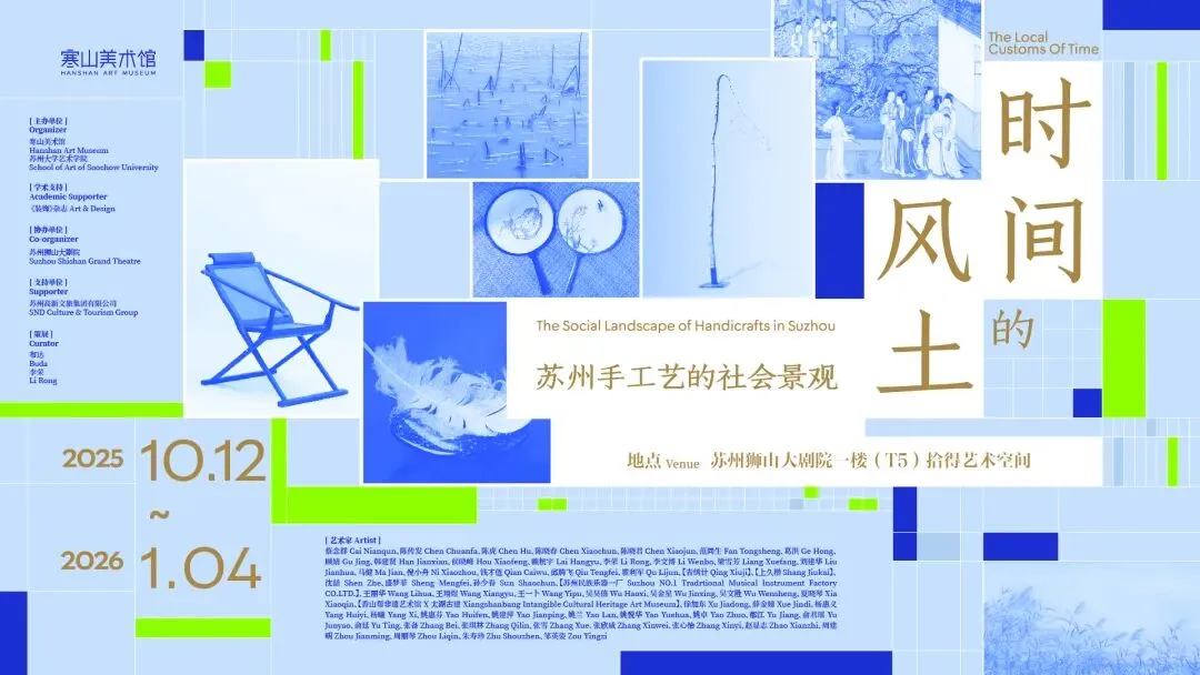 “时间的风土——苏州手工艺的社会景观”展览将于2025年10月12日在苏州狮山大剧院开幕,展期2025年10月12日-2026年1月4日。此次展览作为寒山美术馆的“馆外馆”拾得艺术空间 首发新空间开幕展,试图打破常见的"器物中心主义"视角,不再单纯展示工艺品的技艺、材质肌理与市场价值,而是以社会学、实践理论为核心视角和策展框架,将手工艺理解为一种动态的、嵌入社会结构的“社会实践”,还原其与地方生态、社群网络及文化记忆的血脉联结。