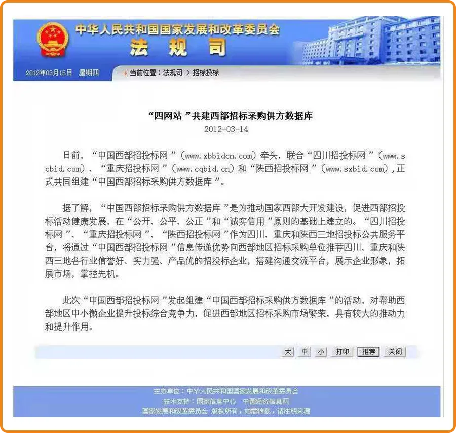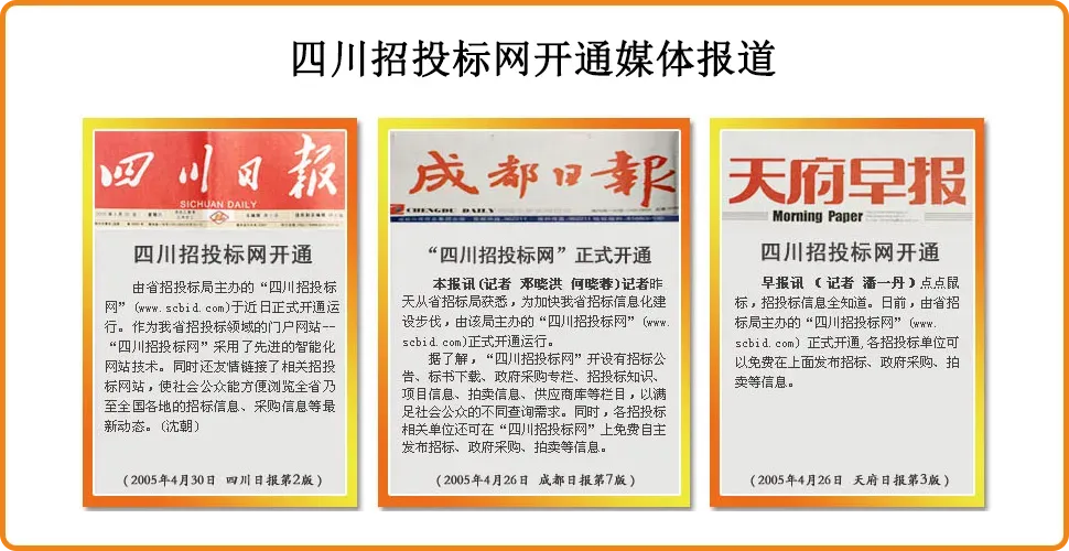 “四川招投标网”(www.scbid.com)开通于2005年3月,原为四川省招标局主办主管,网站经过20年的持续运营,已发展成为四川省招投标公共服务平台和国内招投标领域知名专业网络媒体。