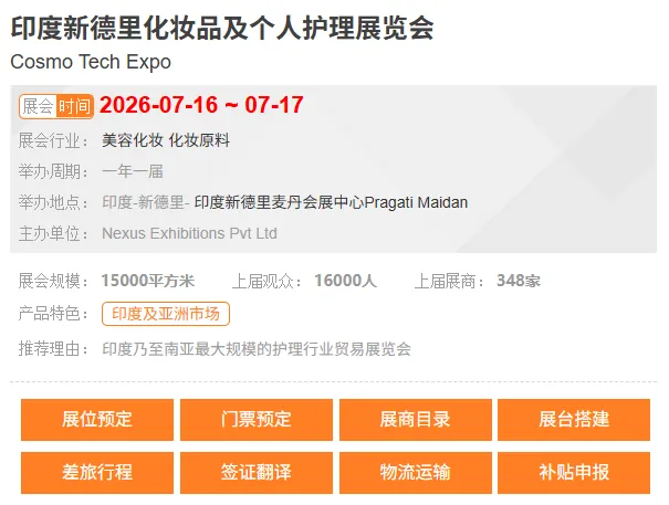 展会现场报道:印度新德里化妆品及个人护理展览会Cosmo Tech Expo