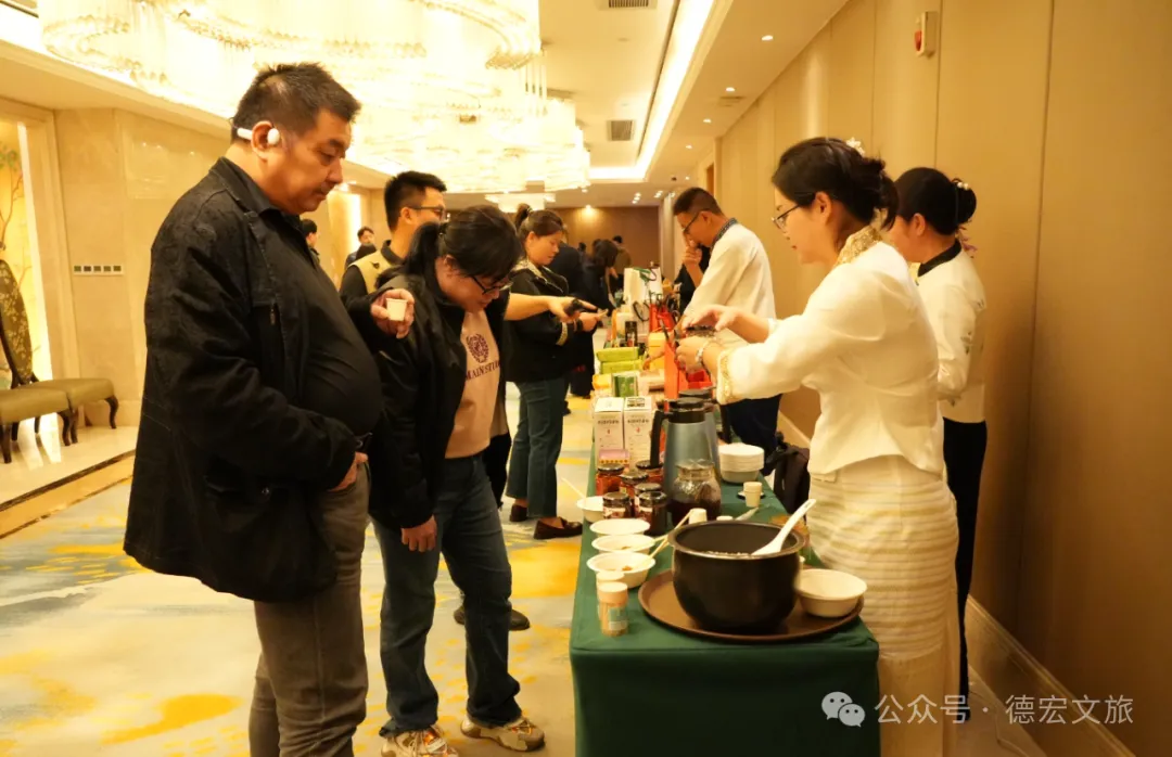 德宏州旅游行业协会还向泉州各界发出投资兴业、考察踩线、洽谈交流和旅居度假的诚挚邀请,期待双方携手共赢,共同开创文旅事业新局面,实现互利发展。会场外,德宏州的各种特色文创商品以及咖啡、酸茶、坚果、贡米等农特产品吸引了众多泉州市民驻足观看、品尝、了解。