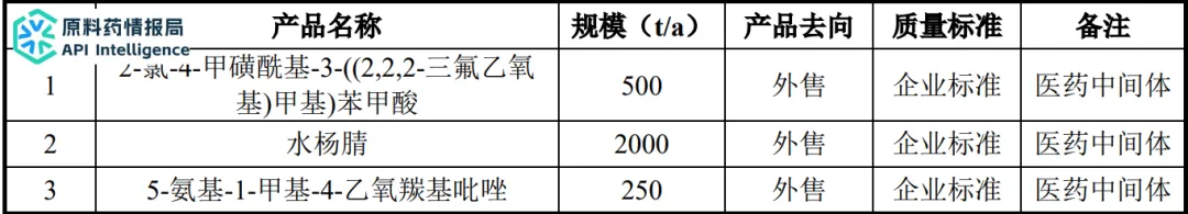 建设内容:在甲类车间A新建年产2000吨水杨腈生产线和年产250吨5-氨基-1-甲基-4-乙氧羰基吡唑生产线;依托甲类车间D,利用一期亚磷酸生产线改建,设置年产500吨2-氯-4-甲磺酰基-3-((2,2,2-三氟乙氧基)甲基)苯甲酸生产线。