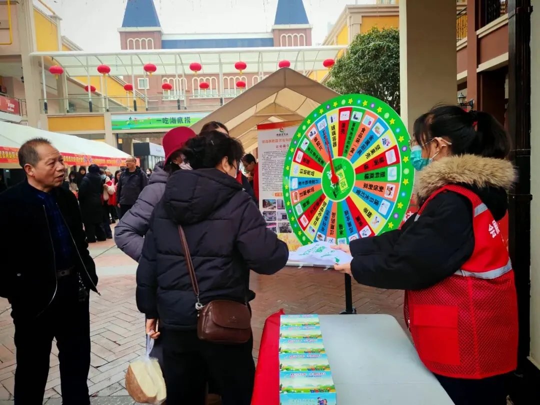 活动现场,趣味垃圾分类大转盘成为最受市民欢迎的互动项目。市民们有序排队参与,转动转盘后根据指针指向的垃圾名称,现场回答正确的垃圾分类类别。区垃圾分类办工作人员与社区志愿者在一旁耐心讲解、专业指导,帮助市民厘清易混垃圾的分类标准,让大家在轻松互动中掌握分类知识。